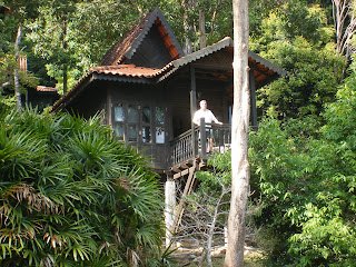 placeret i små hytter rund omkring på en bjergskråning. Nogle bygget på pæle helt ude i vandet. (Se billede i tidligere indlæg). Vores var monkey class og placeret oppe mellem træer, buske og – aber. Vi ankom d. 30. dec., så Mariannes fødselsmiddag