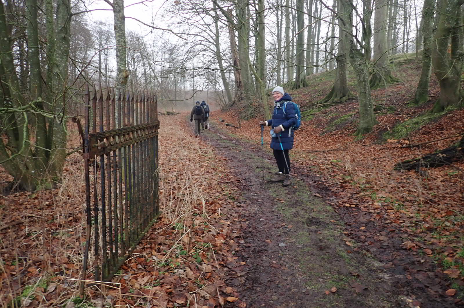 Stien fortsætter væk fra slottet, og drejer kort efter til venstre ved en jernlåge ind i skoven.